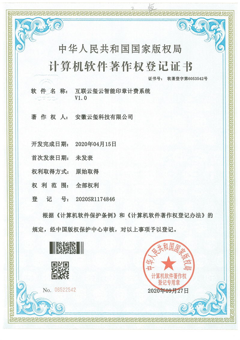 互聯(lián)云璽云智能印章計費(fèi)系統(tǒng)V1.0